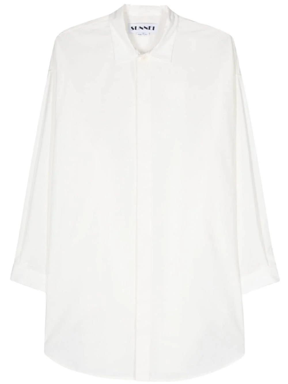 logo-tag poplin shirt Highlights - Off-white - Cotton - Poplin texture - Pleat detailing to the sleeves - Logo-engraved buttons - Logo tag to the rear - Classic collar - Drop shoulder - Long sleeves - Buttoned cuffs - Knee-length - Concealed front button fastening - Curved hem - Unlined - When buying this unisex item, keep in mind that it is graded in standard men's sizing. Made in Italy Composition Cotton 100% Washing instructions Dry Clean Only