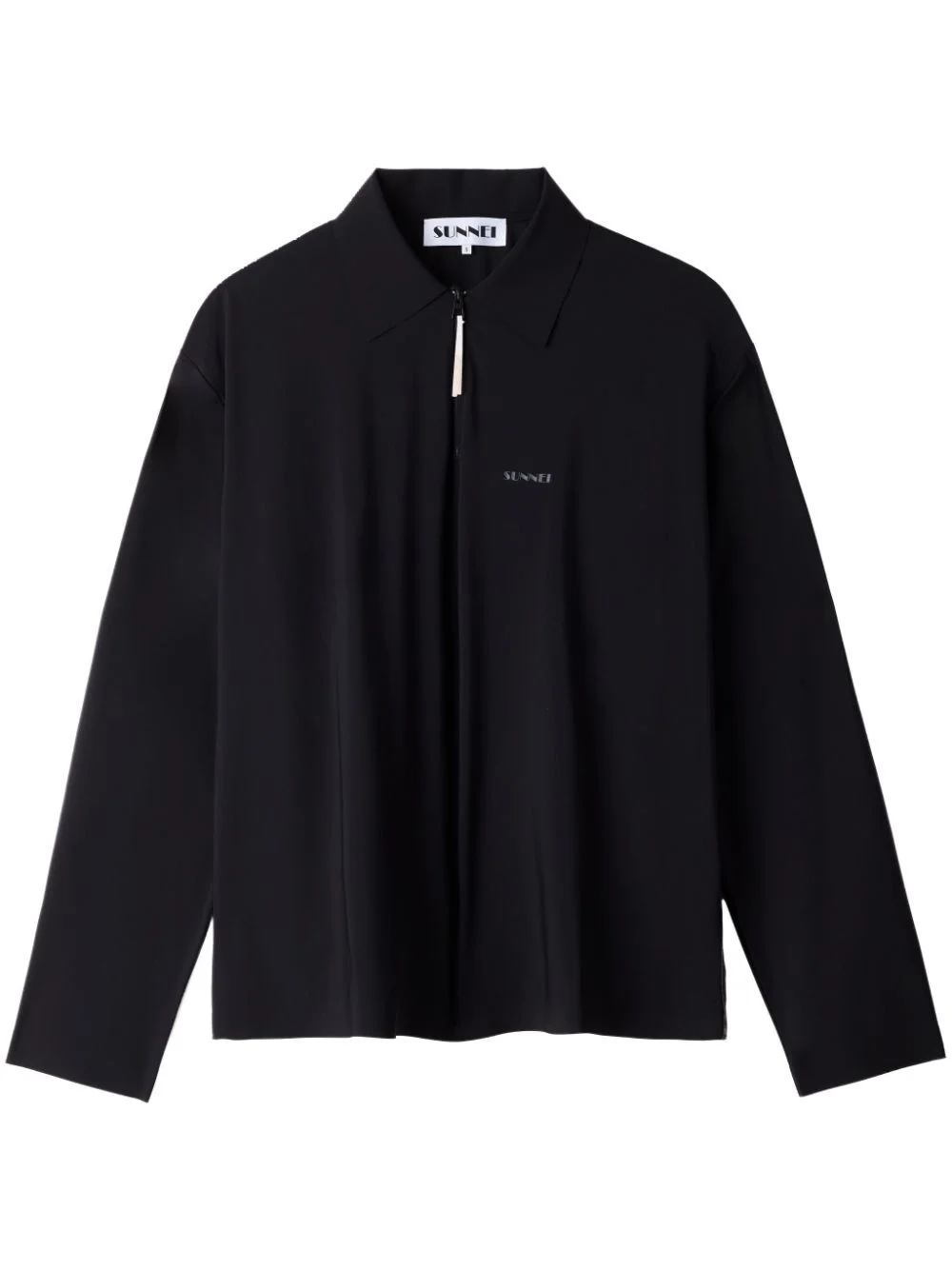 long sleeve zipped polo shirt Highlights - Black - Technical jersey - Stretch-design - Short front zip fastening - Polo collar - Long sleeves - Logo print at the chest - Straight hem - When buying this unisex item, keep in mind that it is graded in standard men's sizing. Imported Composition Nylon 60%, Spandex/Elastane 40%