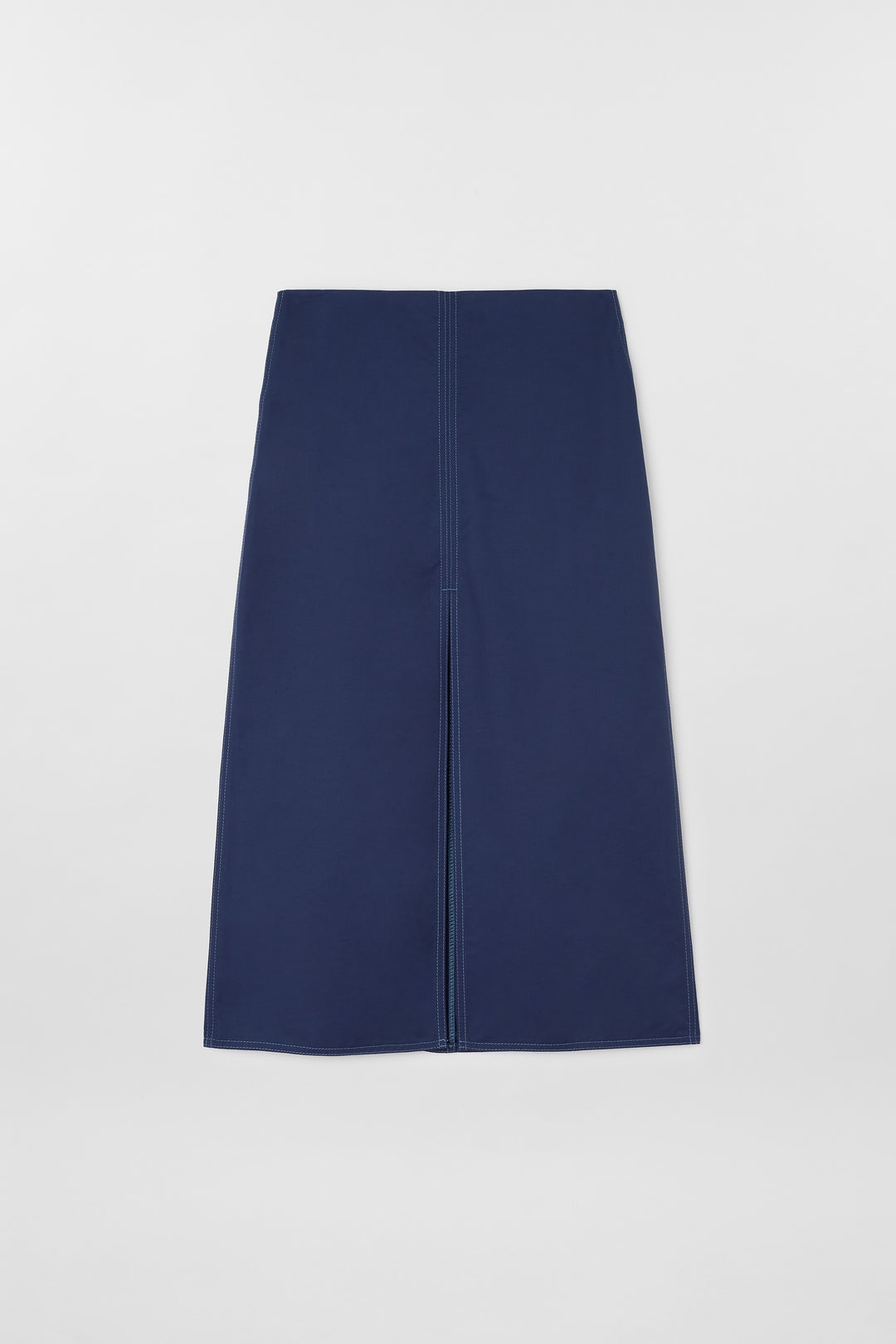 Long panel skirt in blue compact cotton with contrast stitching and invisible zip on centre back. 64%CO 36%PA Jee is wearing a size S. Model measures: Height: 181cm Chest: 80cm Waist: 62cm Hips: 90cm Shoe: 41 Jee is wearing a size S. Model measures: Height: 181cm Chest: 80cm Waist: 62cm Hips: 90cm Shoe: 41
