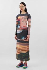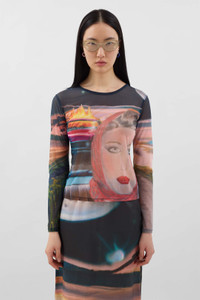 Longsleeve roundneck fitted top in multicolor sheer organza with seasonal Annemarie print featuring SUNNEI gros grain on the centre back. 75%PA 25%EA Materials from Italy Made in Italy Jee is wearing a size S. Model measures: Height: 181cm Chest: 80cm Waist: 62cm Hips: 90cm Shoe: 41