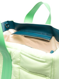 Parallelepipedo padded tote bag Highlights - Mint green - Padded design - Quilted - Circular top handles - Top zip fastening - Detachable shoulder strap - Main compartment - Internal zip-fastening pocket Made in Italy Composition Polyester 100% SIZE & FIT Measurement DEPTH 9.05 in(23 cm) HANDLE 5.51 in(14 cm) HEIGHT 11.81 in(30 cm) STRAP 13.77 in(35 cm) WIDTH 17.32 in(44 cm)