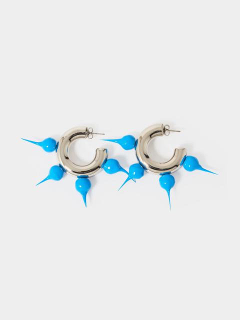 24kt gold-plated brass earrings hoops with handmade fuxia spike silicon finishing. Engraved SUNNEI logo. 5,5cm x 8cm Exterior: 100%BR / Coating: 100%EL Materials from Italy Made in Italy