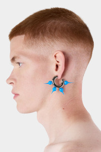 Palladium plated brass earrings hoops with handmade turquoise spike silicon finishing. Engraved SUNNEI logo. 5,5cm x 8cm Exterior: 100%BR / Coating: 100%EL Materials from Italy Made in Italy