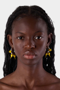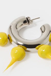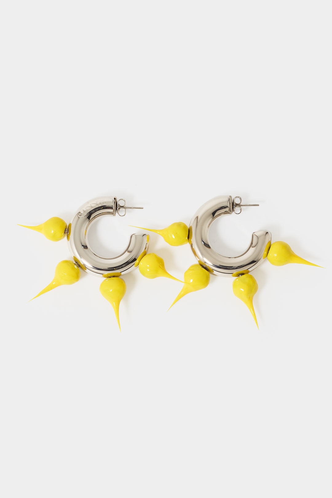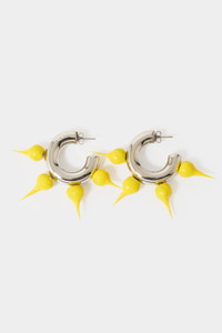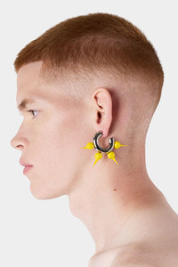 24kt palladium plated brass earrings hoops with handmade dark yellow spike silicon finishing. Engraved SUNNEI logo. 5,5cm x 8cm Exterior: 100%BR / Coating: 100%EL Materials from Italy Made in Italy
