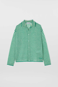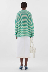 STIPED MOHAIR CARDIGAN / off white & jade green