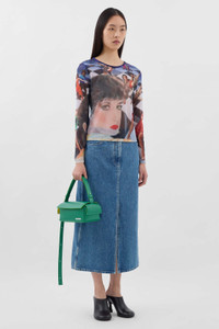 Longsleeve roundneck fitted top in multicolor sheer organza featuring seasonal Brigitte print and SUNNEI gros grain on the centre back. Made in Portugal Xiu is wearing a size S. Model measures: Height: 177cm Chest: 76cm Waist: 63cm Hips: 89cm Shoe: 39 Xiu is wearing a size S. Model measures: Height: 177cm Chest: 76cm Waist: 63cm Hips: 89cm Shoe: 39