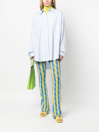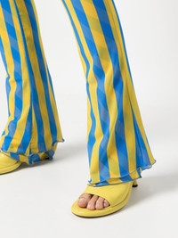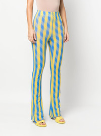 stripe checked slim-fit trousers azure/yellow stretch-design vertical stripe print check print pull-on style elasticated waistband slim cut flared cuffs Made in Italy Composition Nylon 92%, Spandex/Elastane 8% SIZE & FIT Model measurements Height 5 ft 11 in(1.8 m) Bust/Chest 31.49 in(80 cm) Hips 35.43 in(90 cm) Waist 24.4 in(62 cm) FittingInformation This piece fits true to size. We recommend you get your regular size Cut for a slim fit Made with a mid-weight stretch fabric