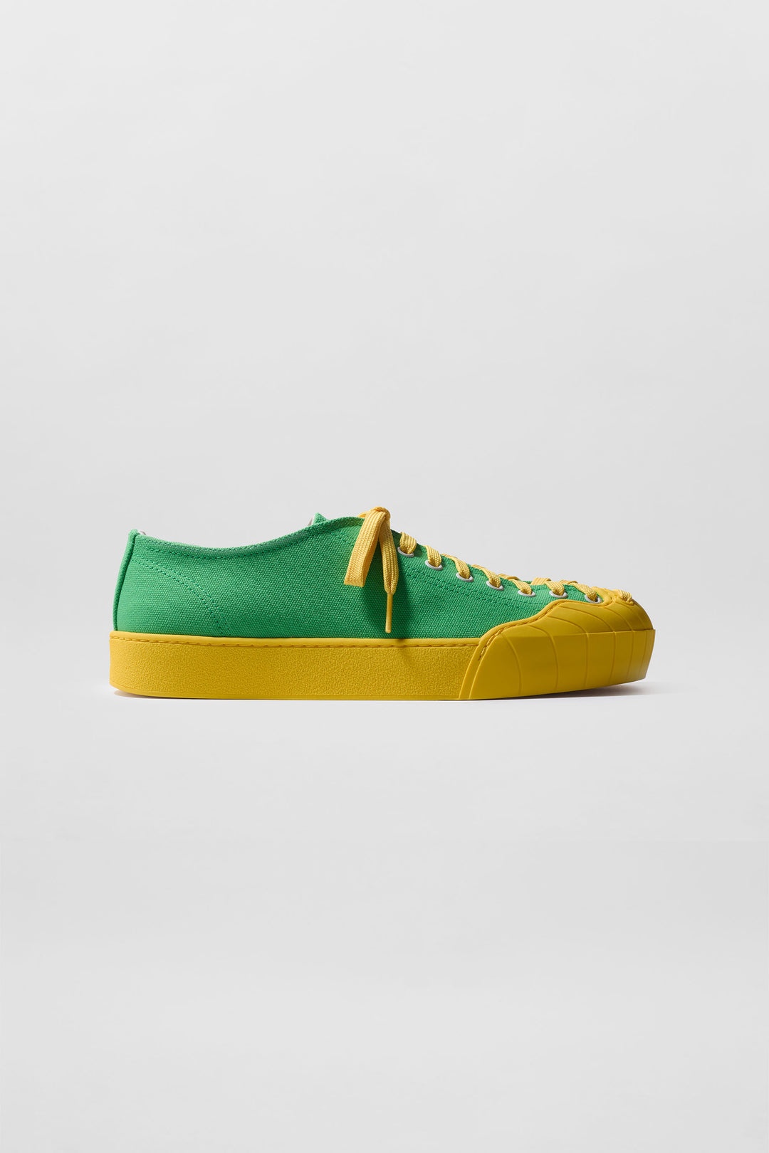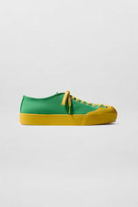 Lowtop lace-up shoes with green & yellow wavy rubber toebox and outsole. Exterior: 100% COTTON / Outsole: 100% ELASTANE