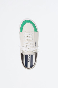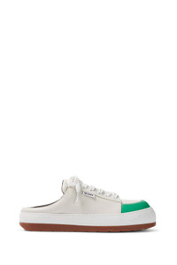 Sabot sneakers with laces. White and emerald green upper with white and caramel outsole. Upper: 100% LE / Sole: 50% EVA - 50% Rubber Material from Italy Made in Italy