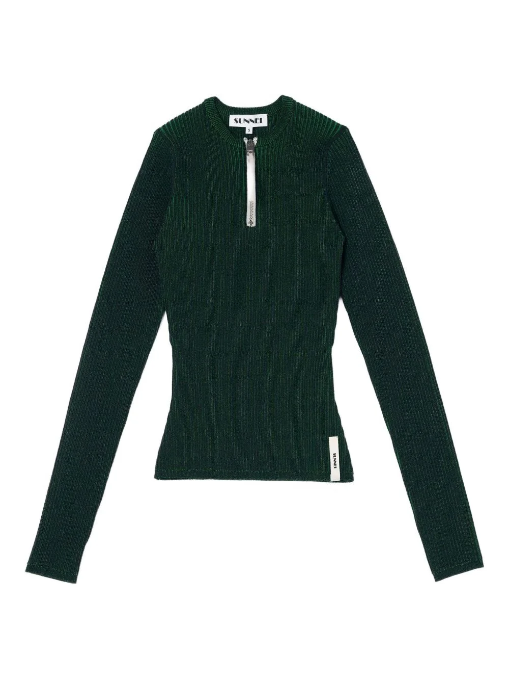 zip-detail round-neck sweater Highlights - Dark blue and electric green - Ribbed knit - Zip fastening - Long sleeves - Logo label Imported Composition Polyamide 59%, Polyester 37%, Elastane 4% Washing instructions Read Manufacturer Guidelines