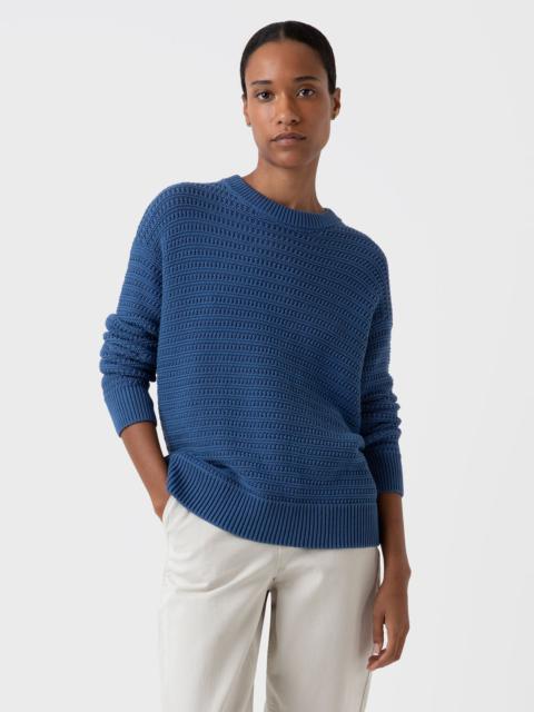 An easy crew neck jumper with a chunky textured body and sleeves and a rib trim along hem and cuffs. Made from long staple cotton with a soft drape, the textured stitch is inspired by vintage pieces in the Sunspel archive. Pair with our chore trousers as an everyday essential for the season. Product Code: WJUM8167-BURV