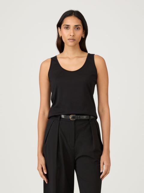 A classic vest cut for a slim fit with a scooped neckline and neat straps, made in our factory in Long Eaton, England. The fabric is an ultra soft Supima cotton, the same fabric we use for our classic T-shirts. Wear as a light summer layer or pair with the matching French knickers for a refined sleepwear set. Product Code: WVES0131-BUAA Fabric & Care - Made in England - 100% Cotton - Gentle wash at 30°C - Do not tumble dry - Dry cleanable Size & Fit - Slim fit - Model is 5'10" and wears a size S