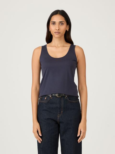 A classic vest cut for a slim fit with a scooped neckline and neat straps, made in our factory in Long Eaton, England. The fabric is an ultra soft Supima cotton, the same fabric we use for our classic T-shirts. Wear as a light summer layer or pair with the matching French knickers for a refined sleepwear set. Product Code: WVES0131-BKAA Fabric & Care - Made in England - 100% Cotton - Gentle wash at 30°C - Do not tumble dry - Dry cleanable Size & Fit - Slim fit - Model is 5'9" and wears a size S