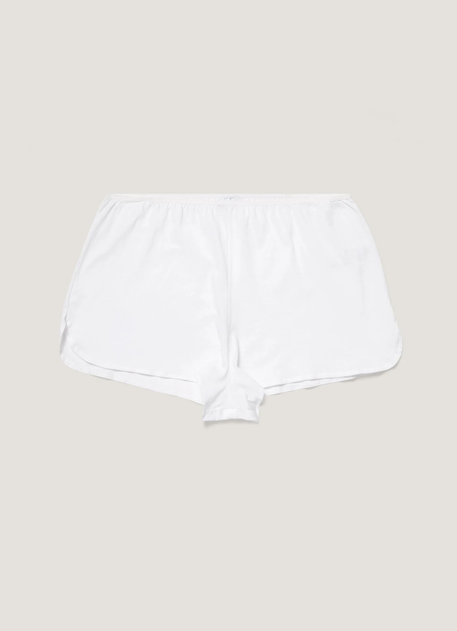 This delicate short sits mid-waist and has a loose cut leg, with elegant curved side hem details. Cut in our ultra-soft, Pima cotton jersey, this French knicker is 100% natural cotton. Pair with our stretch cotton bralette to complete the underwear set, or wear with our soft cotton cami for sleepwear. See the rest of the superfine cotton range here. Product Code: WFRK4506-WHAA Fabric & Care - 100% Cotton - Gentle wash at 40°C - Do not tumble dry - Dry cleanable - Made in Portugal Size & Fit - Soft elastic trim at waist and loose fit leg - Model is 5'9" and wears a size S