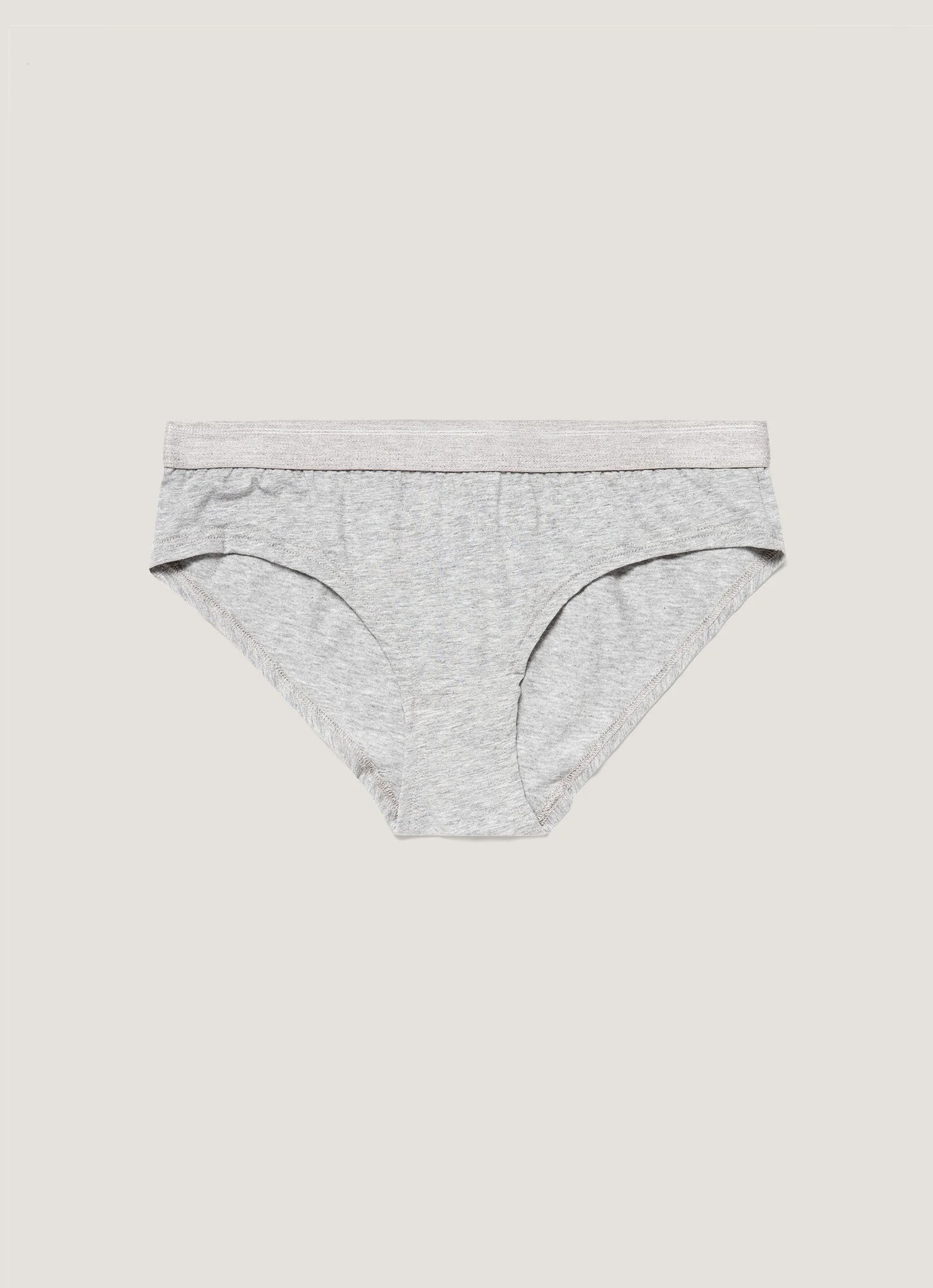Our Stretch Cotton hipster brief is crafted from a soft cotton jersey with 8% elastane for extra comfort and support. The low-rise fit and smooth elastic waistband make for a sleek, flattering silhouette. Pair with our matching crop top to complete the set. See the rest of the premium stretch cotton range here. Product Code: WBRF4509-GYAA Fabric & Care - 98% Cotton, 2% Elastane - Gentle wash at 40°C - Do not tumble dry - Dry cleanable - Made in Portugal Size & Fit - Soft elastic waistband - Model is 5'9" and wears a size S