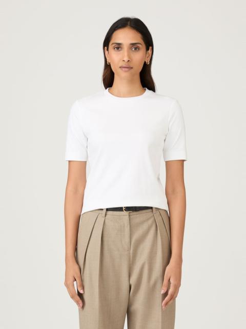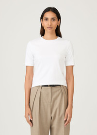 A flattering T-shirt shape in soft carbon brush jersey, heavier than our classic cotton jersey fabric. This is the ultimate transitional T-shirt with a longer mid sleeve length, a perfect layer for cooler days. Product Code: WTSH0127-WHAA Fabric & Care - 100% Cotton - Gentle wash at 40°C - Do not tumble dry - Dry cleanable - Made in Portugal Size & Fit - Relaxed fit - Model is 5'10" and wears a size S