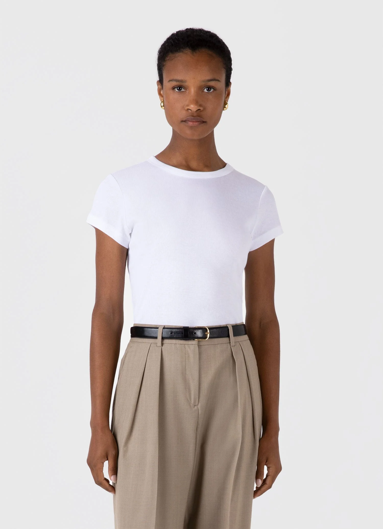 Crafted from a luxurious rib jersey made with Californian Supima cotton. With a slim fit, cap sleeve, crew neck and bound neck detailing, it’s a beautifully comfortable layer with a sleek, contemporary silhouette. Product Code: WTSH0169-WHAA Fabric & Care - 100% Supima Cotton - Gentle wash at 30°C with similar colours - Do not tumble dry - Do not dry clean - Made in Portugal Size & Fit - Slim fit - Model is 5'9" and wears a size S (UK 10)