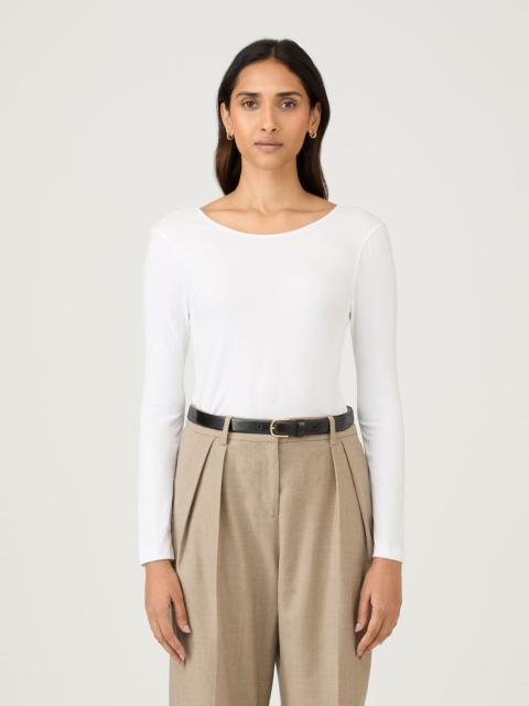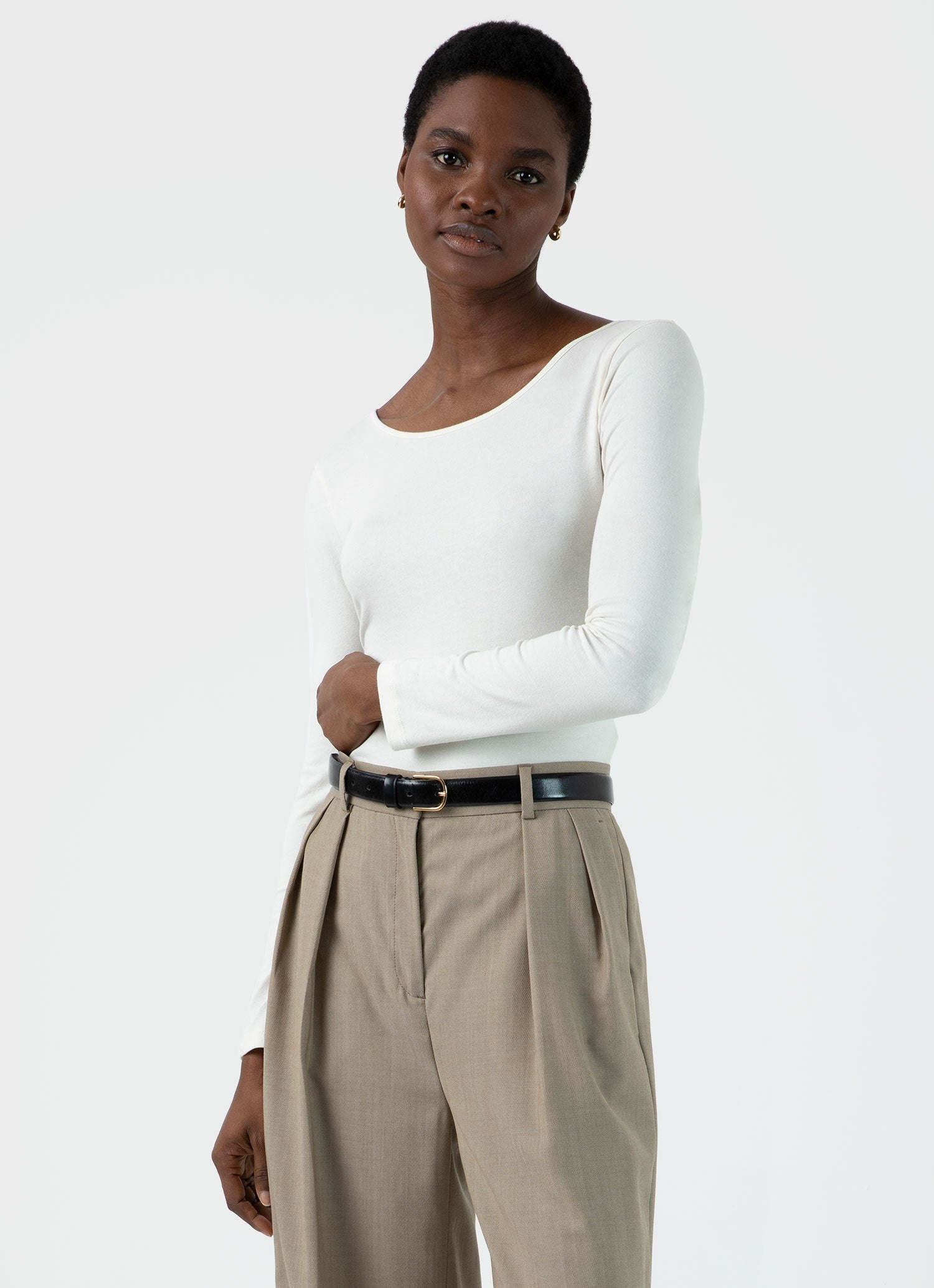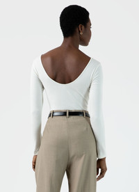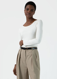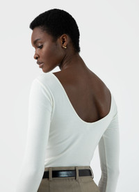 Crafted from a beautifully soft cotton jersey with a slight stretch for added comfort, this top has a feminine, body-hugging silhouette and an elegant scoop back neckline. An effortless standalone layer that can also be layered under a shirt or cardigan. Product Code: WTOP2503-WHCR Fabric & Care - 94% Cotton, 6% Elastane - Gentle wash at 30°C with similar colours - Do not tumble dry - Do not dry clean - Made in Portugal Size & Fit - Slim fit - Model is 5'10" and wears a size S