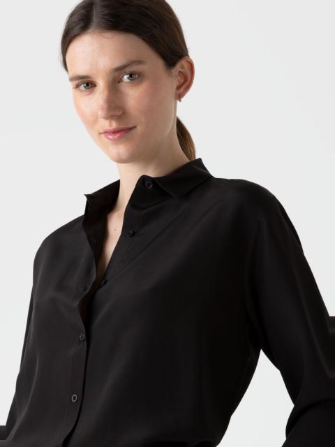 A lightweight shirt in soft matt silk with effortless drape – versatile enough to be worn from day to evening. Classic shirt style with minimal detailing. The back box pleat and relaxed cut give ease of movement. Pairs well with our wide leg trouser. Product Code: WSHT2036S-WHCR Fabric & Care - 100% Silk - Do not wash - Do not tumble dry - Dry clean only - Made in Portugal