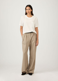 A luxury T-shirt crafted from a lightweight, soft and responsibly sourced silk fabric. With a natural drape, relaxed body fit and jersey trim it can be dressed up as a stylish evening piece or down as a comfortable everyday staple. Product Code: WTSH0141-WHCR Fabric & Care - Main: 100% Silk - Trim: 100% Cotton - Do not wash - Do not tumble dry - Dry clean only - Made in Portugal Size & Fit - Relaxed fit - Model is 5'10" and wears a size S
