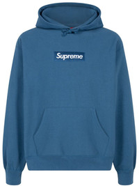 box logo cotton hoodie The story of Supreme's box logo begins in 1994 when founder James Jebbia opened the shop's doors in New York City. A line of T-shirts was released to coincide with the launch, for which the iconic symbol featuring white lettering inside a rectangular red box was designed. Since then, it has cemented itself in popular culture and now features across a range of different pieces. A case in point, this prussian-blue hoodie is made from cotton to a relaxed silhouette adorned with a tonal version of the emblem. Highlights - Prussian blue - Cotton - Signature box logo - Drawstring hood - Drop shoulder - Long sleeves - Front pouch pocket - Ribbed cuffs and hem - When buying this unisex item, keep in mind that it is graded in standard men's sizing. Imported Composition Cotton 100% Washing instructions Read Manufacturer Guidelines