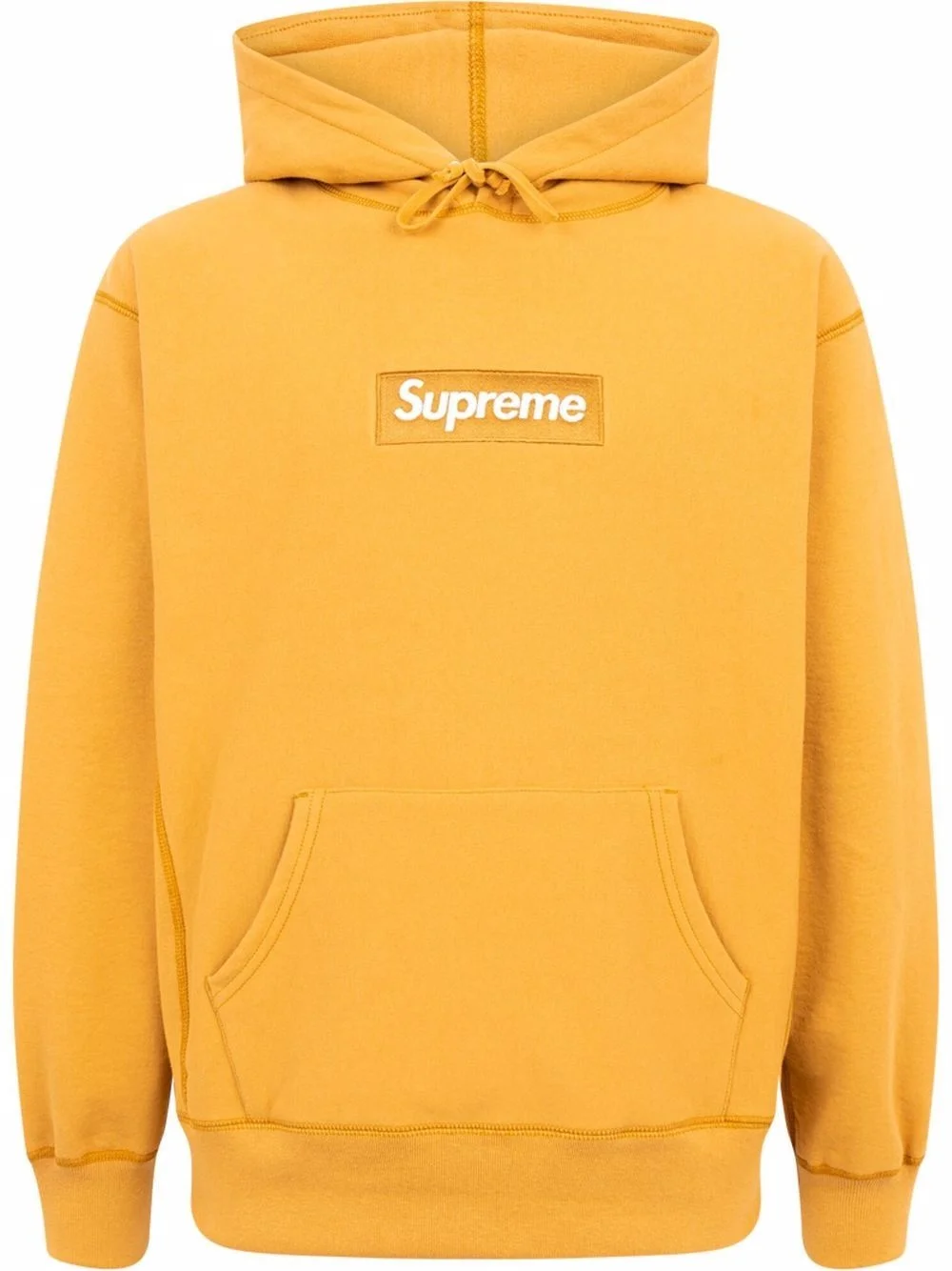 Box Logo drawstring hoodie Supreme moves away from eye-catching branding with this yellow hoodie, instead opting for a small box logo to the front. This allows for a more pared-back look for the off-duty piece. Imported Composition Cotton 100%