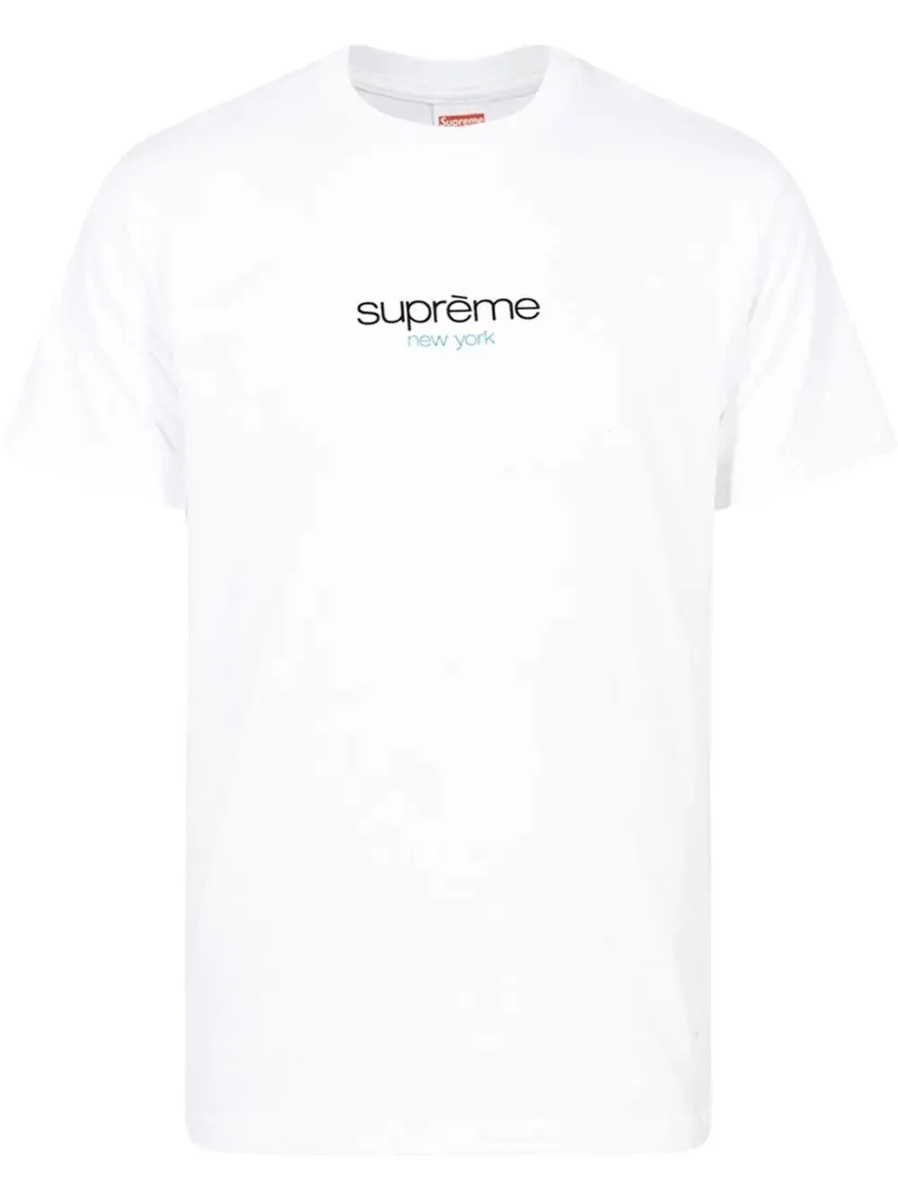 Classic Logo crewneck T-shirt The Supreme classic logo tee is a minimalist, all-cotton short-sleeve T-shirt by the 'World Famous' streetwear brand. This piece was originally released back in 1998 and later revived by the brand for its AW22 collection. Inspiration for Supreme’s Classic Logo is derived from Courreges, a French clothing brand owned by Andres Courreges. Made in United States Composition Cotton 100%