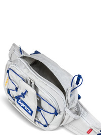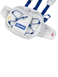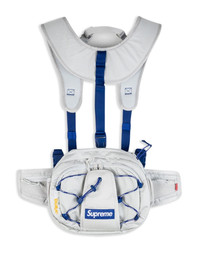harness waist bag Ideal for exploration and adventure, this light-grey belt bag by Supreme is crafted from waterproof CORDURA® ripstop material, boasting a unique design with an adjustable and detachable harness as well as a waist strap for ease of carry. It is decorated with one of Supreme's most iconic details: the signature box logo, rendered in royal blue. Highlights - Light grey/royal blue - Waterproof cordura® material - Ripstop texture - Logo patch to the front - Top zip fastening - Two padded adjustable shoulder straps - Adjustable waist strap - Front zip-fastening pocket - Main compartment Imported Composition Polyester 100%