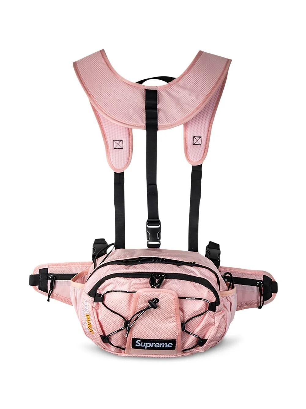 harness waist bag This pink harness waist bag is highlighted with one of Supreme's most iconic details: the signature box logo. Its design features rope drawstring fastening on the front, giving it a casual look and secure fit. Imported Composition Nylon 100%