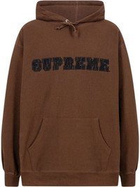 lace-detail logo hoodie Supreme's signature blend of casual clothes and bold branding is reflected in the design of this brown hoodie. Crafted from cotton, it is punctuated with the label's logo on the chest, but with lace detail. Imported Composition Cotton 100%