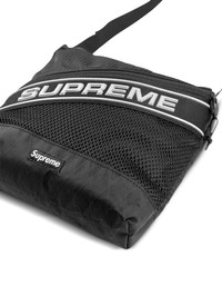logo "Black" shoulder bag This black Supreme bag combines functional materials with signature design cues. It’s panelled from ripstop, canvas and mesh with dual logos at the front. Myriad pockets allow for organised storage. Highlights - Black - Ripstop texture - Canvas - Mesh panelling - Panelled design - Single flat top handle - Adjustable shoulder strap - Applique logo - Signature box logo - Front zip-fastening pocket - Slip pocket to the rear - Main compartment - Internal zip-fastening pocket - Top zip fastening Imported Composition Outer: Mesh 100%