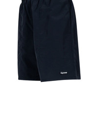 logo-print water shorts Simple and practical, these Supreme shorts arrive in an all-black colourway finished by an elasticated waistband with an interior drawcord. They're crafted from supplex® nylon taslan with mesh lining and are highlighted with a signature box logo at the lower leg. Imported Composition Nylon 100%
