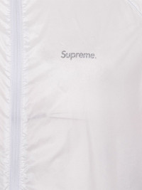 ripstop hooded windbreaker From Supreme, this jacket pairs practicality with a branding-focused finish. Detailed with logo graphics to the front and sleeves, the piece boasts a functional lightweight hooded silhouette. Highlights - White/red - Mesh detailing - Logo print at the sleeve - Logo print to the front - Drawstring hood - Front zip fastening - Long sleeves - Two side slit pockets - When buying this unisex item, keep in mind that it is graded in standard men's sizing. Imported Composition Polyamide 100%