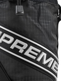 small cinch pouch This small cinch pouch from Supreme, in black, is crafted from durable nylon ripstop material that is resistant to water. The accessory features a striking box logo at the back and a 3M reflective moulded logo webbing, adding a touch of sophistication to its overall design. Highlights - Black - Mesh panelling - Water-resistant - Signature box logo - Logo-embossed strap - Adjustable shoulder strap - Top drawstring fastening - Main compartment Imported Composition Outer: Fabric 100%