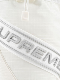 Small Cinch Pouch "White" messenger bag Showcasing Supreme’s affinity for utilitarian accessories, this white Small Cinch Pouch is crafted from water-repellent ripstop to a cylindrical silhouette and adorned with 3M® Reflective moulded logo webbing to the front. It fastens with a drawstring and is anchored with an adjustable shoulder strap for custom styling. Highlights - White - Ripstop texture - Water-repellent - Logo-embossed strap - Reflective detailing - Applique logo - Cylinder body - Top drawstring fastening - Adjustable shoulder strap - Mesh pocket to the rear - Main compartment Imported Composition Outer: Nylon 100%