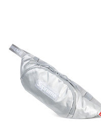 small waist bag Supreme's small waist bag is back for the new season in a silver-tone colourway. The model stands out for its colour and practical design, featuring a spacious interior and a front zip pocket. Highlights - Silver-tone - Recycled nylon - Signature box logo - Top zip fastening - Front zip-fastening pocket - Adjustable shoulder strap - Buckle fastening Imported Composition Outer: Recycled Nylon 100%