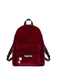textured backpack Highlights - Red - Leopard print - Top handle - Front pocket - Logo patch - Adjustable shoulder straps Imported Composition Outer: Velvet 100%
