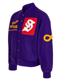 Tourist "Purple" varsity jacket Spun from soft wool, Supreme's Tourist varsity jacket features original artwork by Cactus Plant. It's further decorated with a chain stitch embroidered logo on the chest, whilst applique detailing emblazons the chest, sleeves and back of the design. Highlights - Purple/multicolour - Wool - Ribbed band collar - Logo patch at the chest - Applique detailing - Front button fastening - Long sleeves - Two side slit pockets - Ribbed cuffs and hem - When buying this unisex item, keep in mind that it is graded in standard men's sizing. Imported Composition Wool 100%