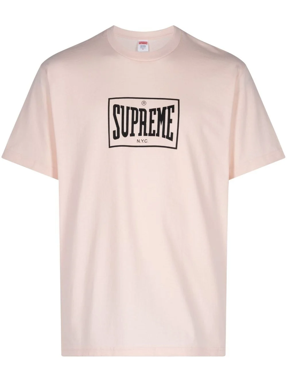 Warm Up "Pale Pink" T-shirt The Warm Up tee showcases Supreme's love for bold graphics. Crafted from pale pink cotton to a classic crew neck, it's defined by the boxed contrasting logo print on the front. Highlights - Light pink - Cotton - Logo print to the front - Crew neck - Short sleeves - Straight hem - When buying this unisex item, keep in mind that it is graded in standard men's sizing. Imported Composition Cotton 100%