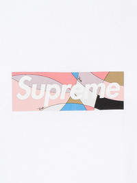 x Emilio Pucci Box Logo T-shirt Supreme is back with another great collaboration, this time, with Emilio Pucci and its iconic geometric prints. This white short-sleeve T-shirt comes with a Supreme box logo decorated with a multicolour Pucci pattern print on the chest. Made in United States Composition Cotton 100%
