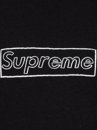 x Kaws Chalk Logo T-shirt The Supreme x KAWS collaboration is back for the autumn-winter 2021 collection. Reminiscent of the iconic box logo, this black cotton design is anchored with a white chalk outline logo which has so far been deemed the most popular item in the drop of over 250 pieces. Highlights - Black - Cotton - Signature box logo - Round neck - Short sleeves - Straight hem - When buying this unisex item, keep in mind that it is graded in standard men's sizing. Made in United States Composition Cotton 100% Washing instructions Machine Wash