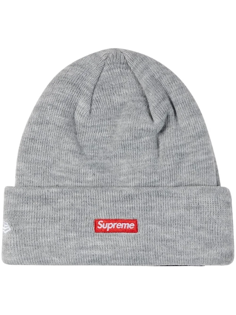 x New Era S Logo knitted beanie Supreme is renowned for its branded streetwear pieces, exemplified by this heather grey beanie. Designed in collaboration with headwear brand New Era, the simple construction is elevated with a signature box logo and embroidered 'S' motif topped with devilish horns. Imported Composition Acrylic 100%