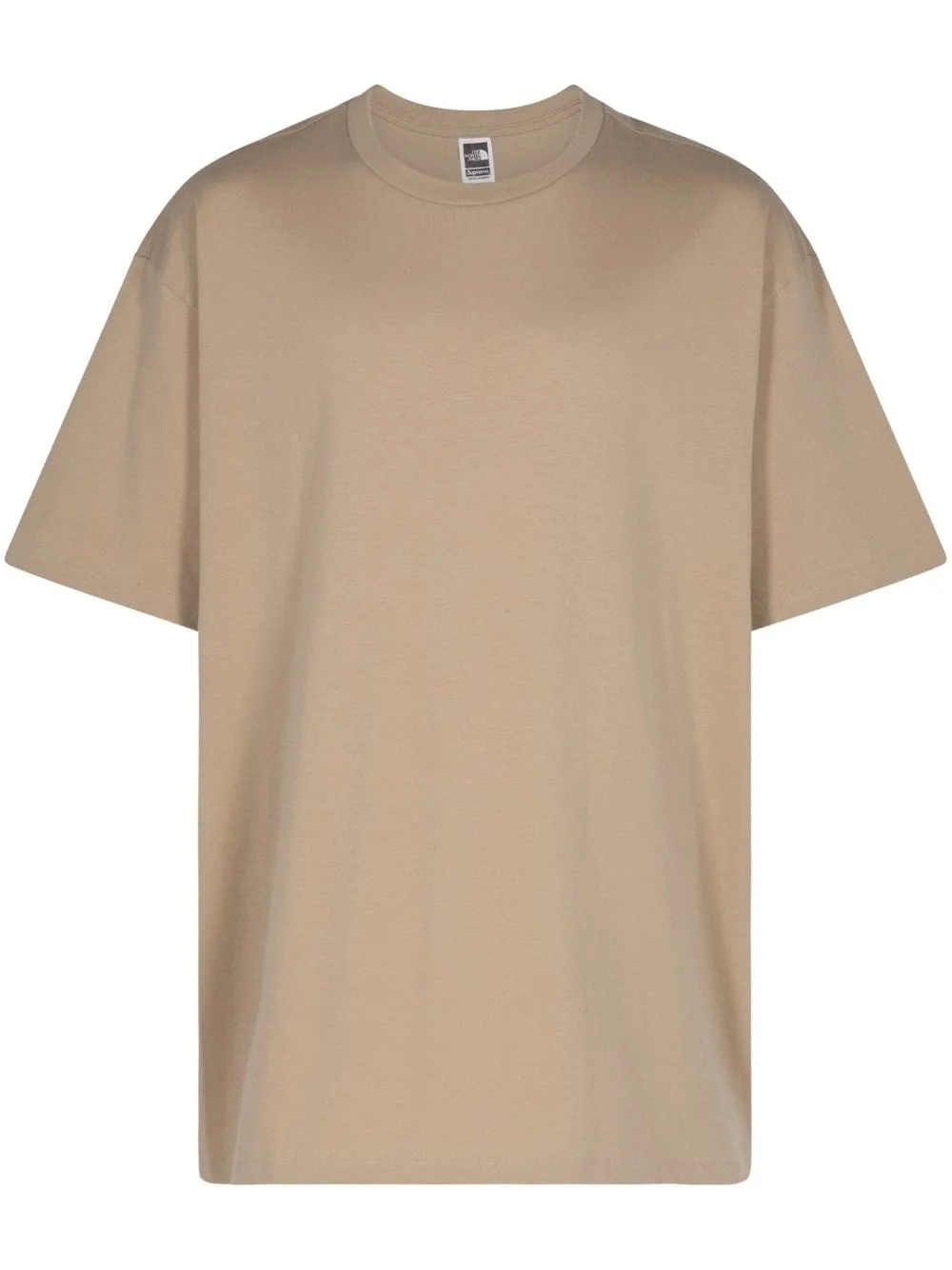 x The North Face "Khaki" T-shirt Supreme reunites with The North Face for another collaborative edit. Centred around versatile clothing, the line includes this classic crew neck, elevated with both brands' logos on the back in a contrasting purple hue. Highlights - Light brown - Cotton - Logo print to the rear - Crew neck - Drop shoulder - Short sleeves - Straight hem - When buying this unisex item, keep in mind that it is graded in standard men's sizing. Imported Composition Cotton 100%