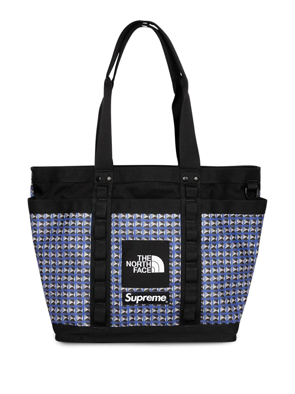 x The North Face Studded Explore utility tote bag Released as part of the Week Five drop of a Supreme x The North Face collaboration, this Explore Utility tote showcases the printed stud detailing that appears throughout the collection. Branding appears in the form of logo patches to the front, furthering the street-style aesthetic of this piece. Made in United States Composition Outer: Polyester 100% Lining: Fabric 100%