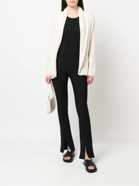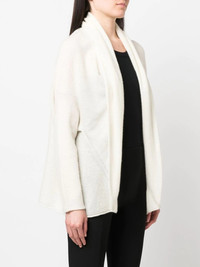 open-front knit cardigan off-white cashmere fine knit ribbed detailing open front long sleeves Imported Composition Cashmere 100% SIZE & FIT Model measurements Height 5 ft 10 in(1.78 m) Bust/Chest 31.49 in(80 cm) Hips 36.22 in(92 cm) Waist 25.59 in(65 cm) FittingInformation This piece fits true to size. We recommend you get your regular size Cut for a loose fit Made with a mid-weight fabric Washing instructions Machine Wash