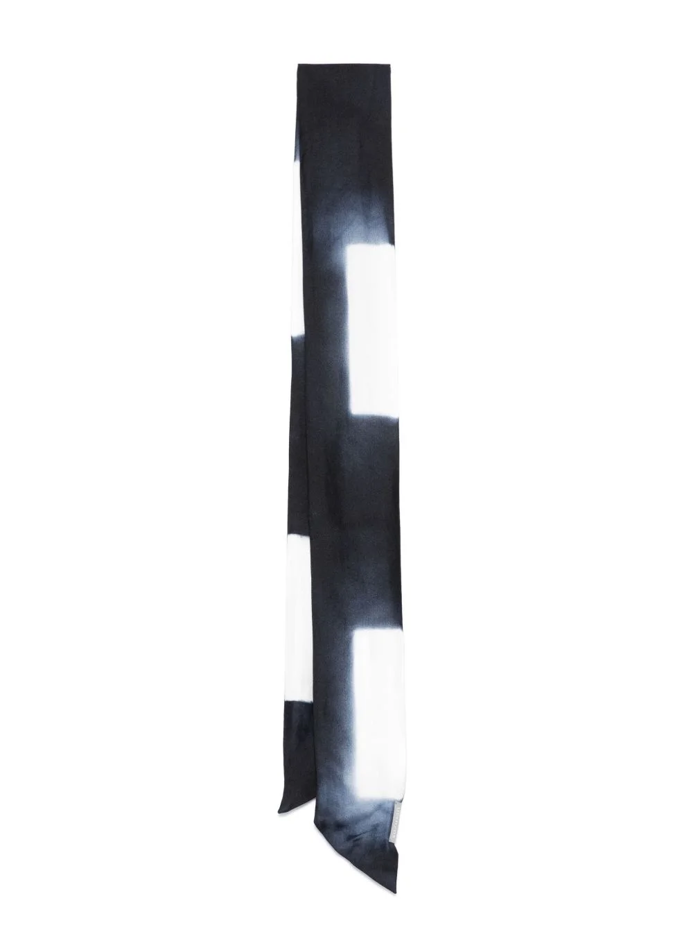 silk twill scarf Highlights - Midnight blue - Abstract pattern print - Rectangle shape - Pointed tip Imported Composition Silk 100% SIZE & FIT Measurement LENGTH 51.18 in(130 cm) WIDTH 3.14 in(8 cm)