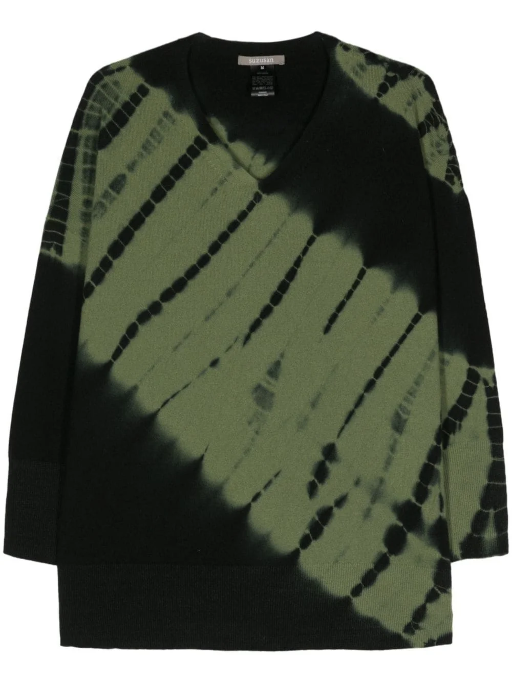 Tesuji Yoroidan Shibori diagonal-pattern cashmere jumper Highlights - Black/green - Cashmere - Tesuji yoroidan shibori diagonal pattern - Ribbed trim - V-neck - Long sleeves - Straight hem Imported Composition Cashmere 100%
