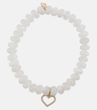 Enhance everyday ensembles with Sydney Evan's whimsical fine jewelry, such as this bracelet. It features glowing moonstone beads and a 14kt yellow gold heart-shaped pendant that's encrusted with 24 dainty white diamonds. Product Details - Material: 14kt yellow gold - Made in Hong Kong - Stone I: moonstone - Stone II: diamonds - Designer color name: Yellow Gold - Item number: P00796921 Size & Fit - Max. width 8mm-0.3" - Circumference 20cm-8" - Elasticated band - Pendant length 10mm-0.4" - Pendant width 10mm-0.4"