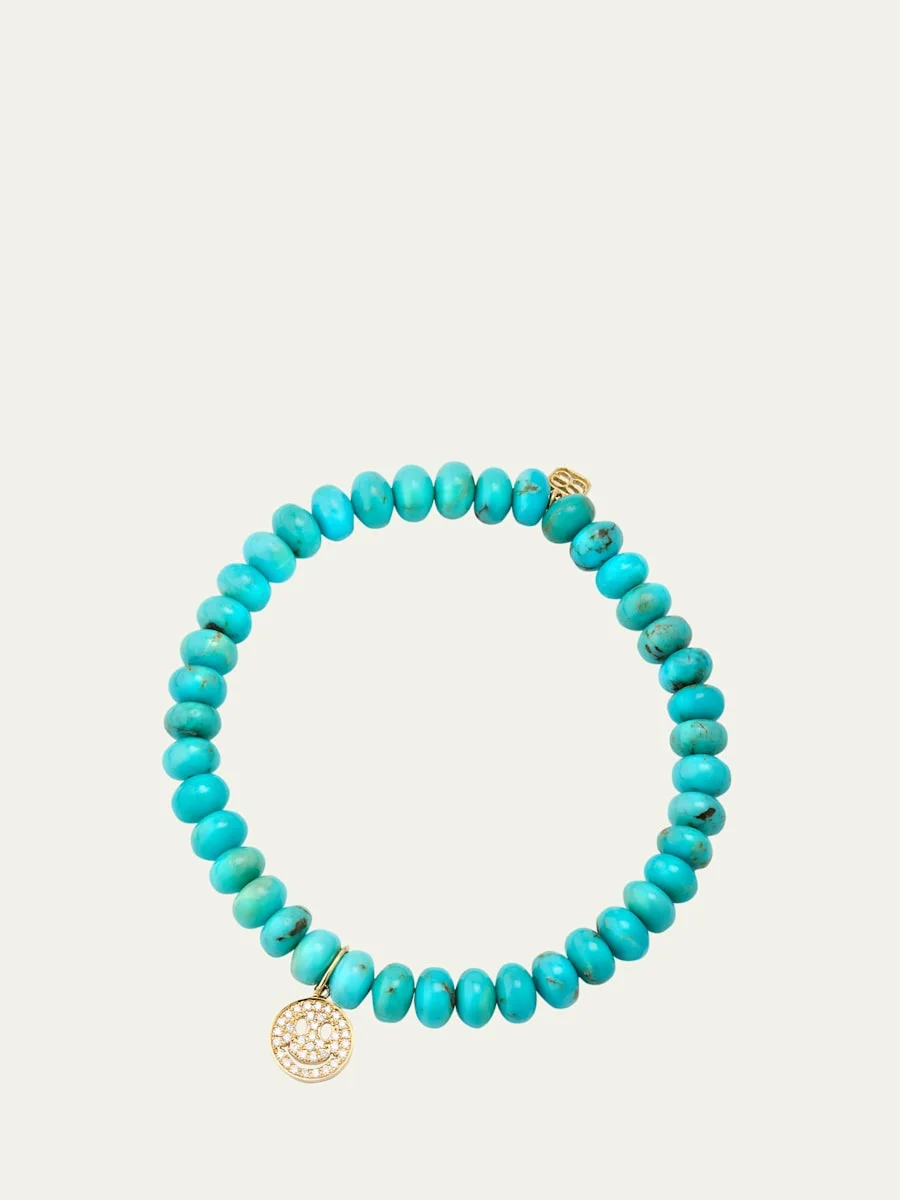 14K Gold Pavé Happy Face Charm on Turquoise Bead Bracelet