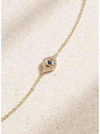The evil eye charm on Sydney Evan's bracelet is meant to ward off negative energy and bring good luck, making it the perfect piece for every day. Crafted from polished 14-karat gold, it has a sapphire iris framed by a halo of dainty diamonds. Details & Care - Diamonds, total weight: 0.04-carats, sapphire, total weight: 0.02-carats - Lobster clasp fastening - Comes in a designer-stamped box - This piece has been certified in accordance with the Hallmarking Act 1973